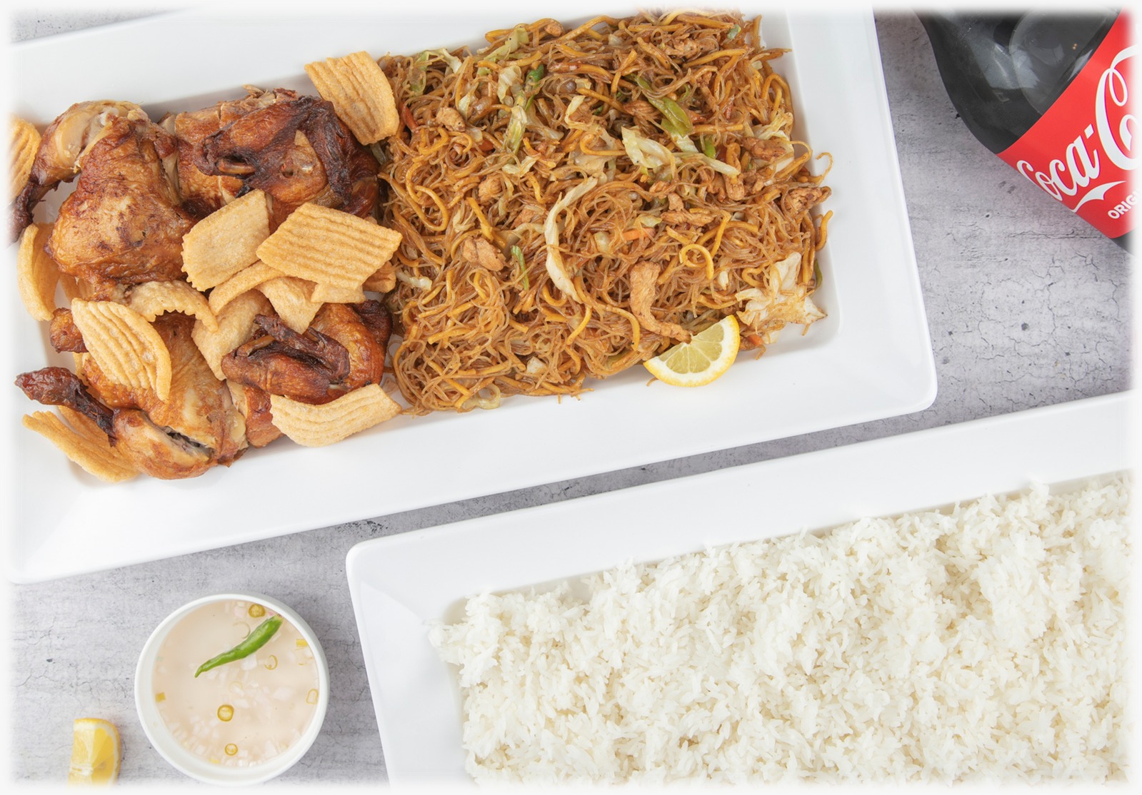 HongKong-style Fried Chicken with Pancit of your choice, steamed rice + 1.5L Coke.