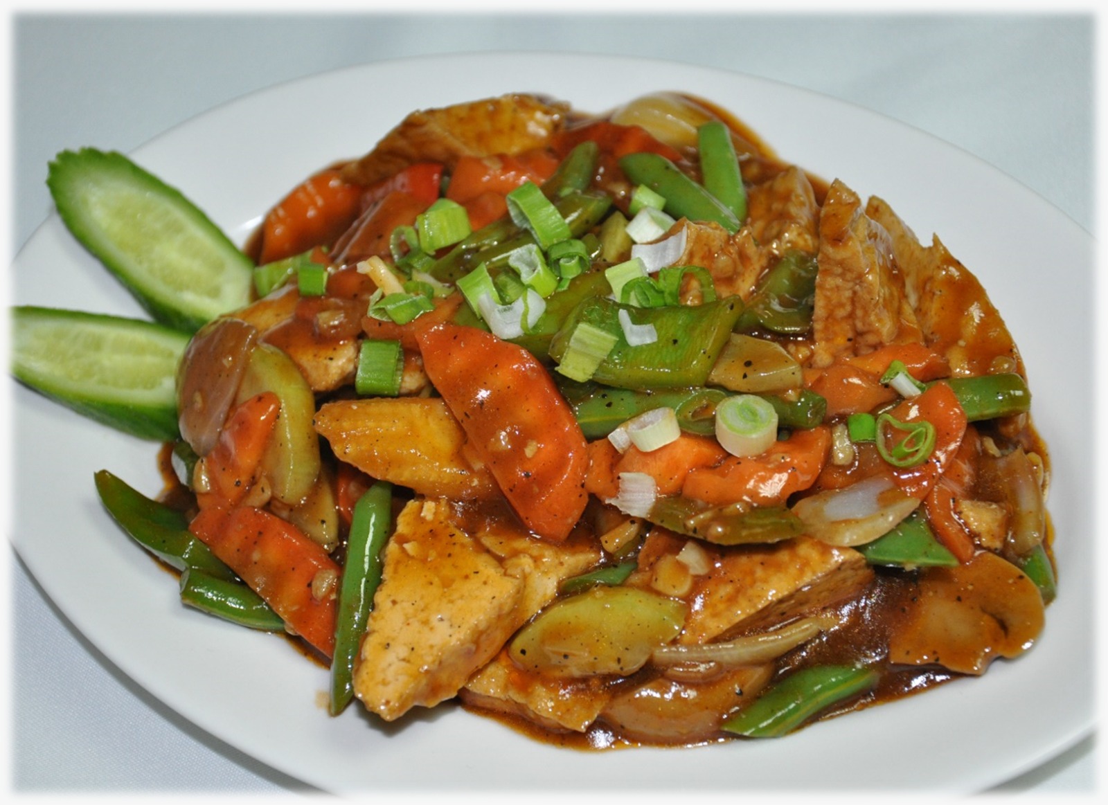 Mixed vegetables with mushroom and tofu in Oyster sauce.