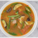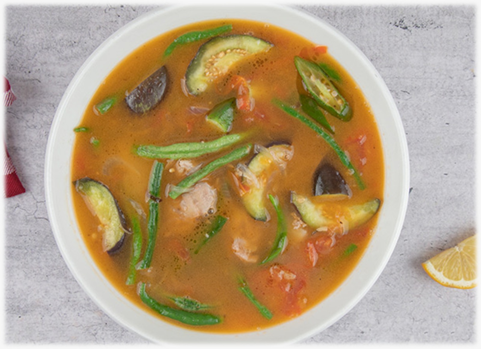 Beef in tamarind soup with radish, eggplant, string beans and gabi